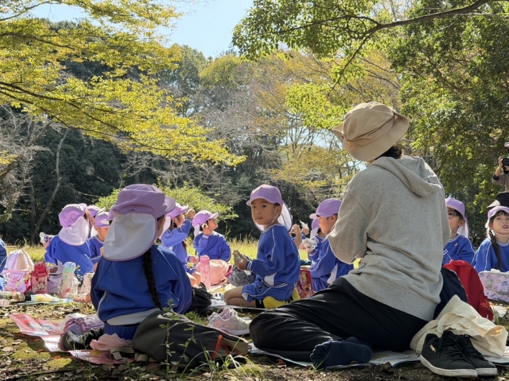 その後は、広場でお弁当。青空の下で食べるお弁当は格別♩友達との会話が弾んでいました!
