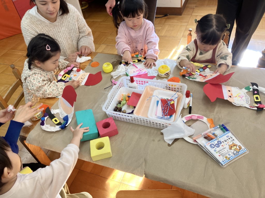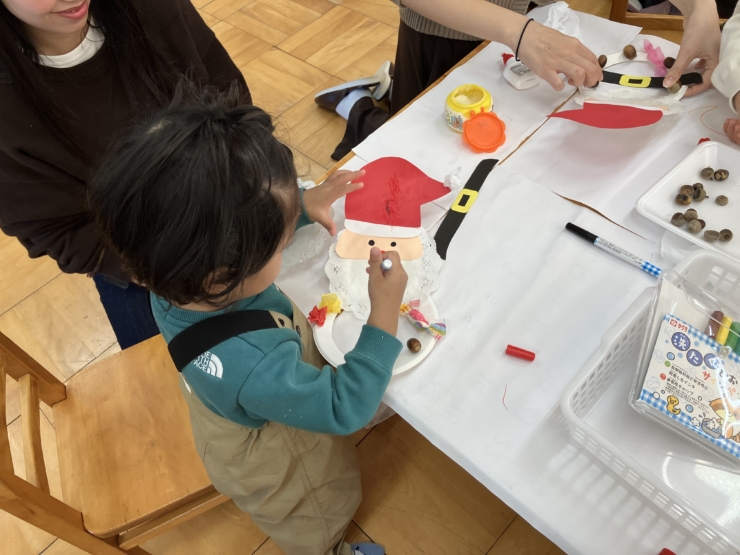 もうすぐクリスマスということで12月2日ぷちぴよランド、12月8日ぴよちゃんランドでは、クリスマスパーティーに向けてクリスマスツリーに飾るサンタクロースを制作してみました。