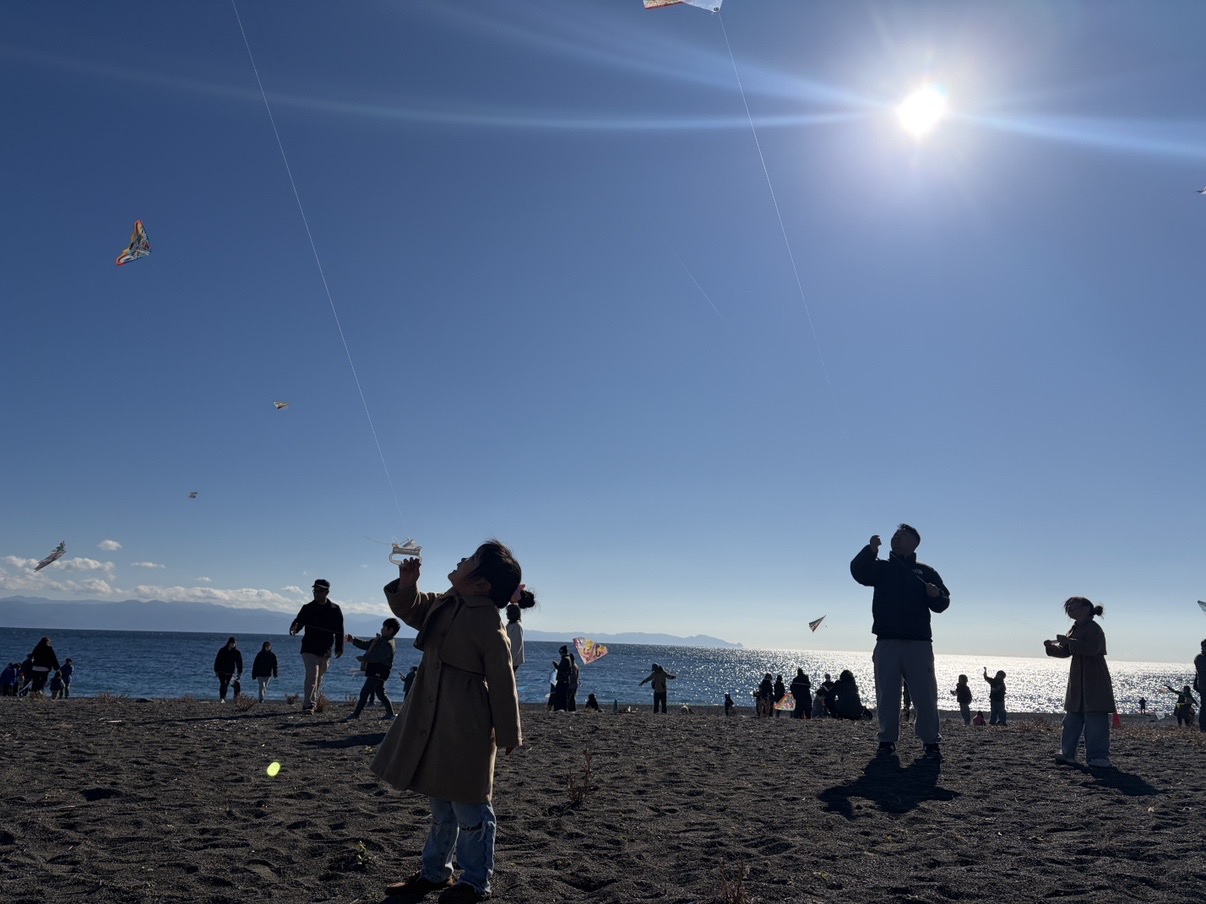 先日、清水区の幼稚園の年長児を対象とした凧揚げ大会に、本園からも希望したご家庭が親子で参加しました。