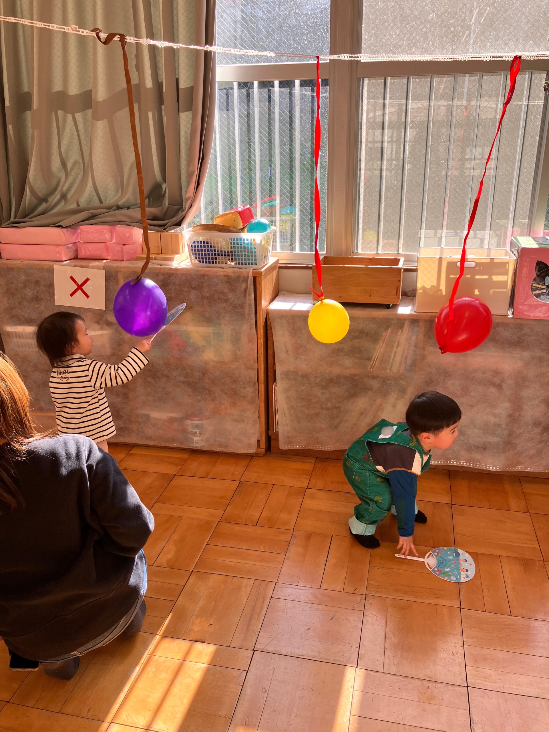 風船が軽くてタイミングが上手につかめない面もみられましたが、そんな時はお母さんが「おたすけマン」✨