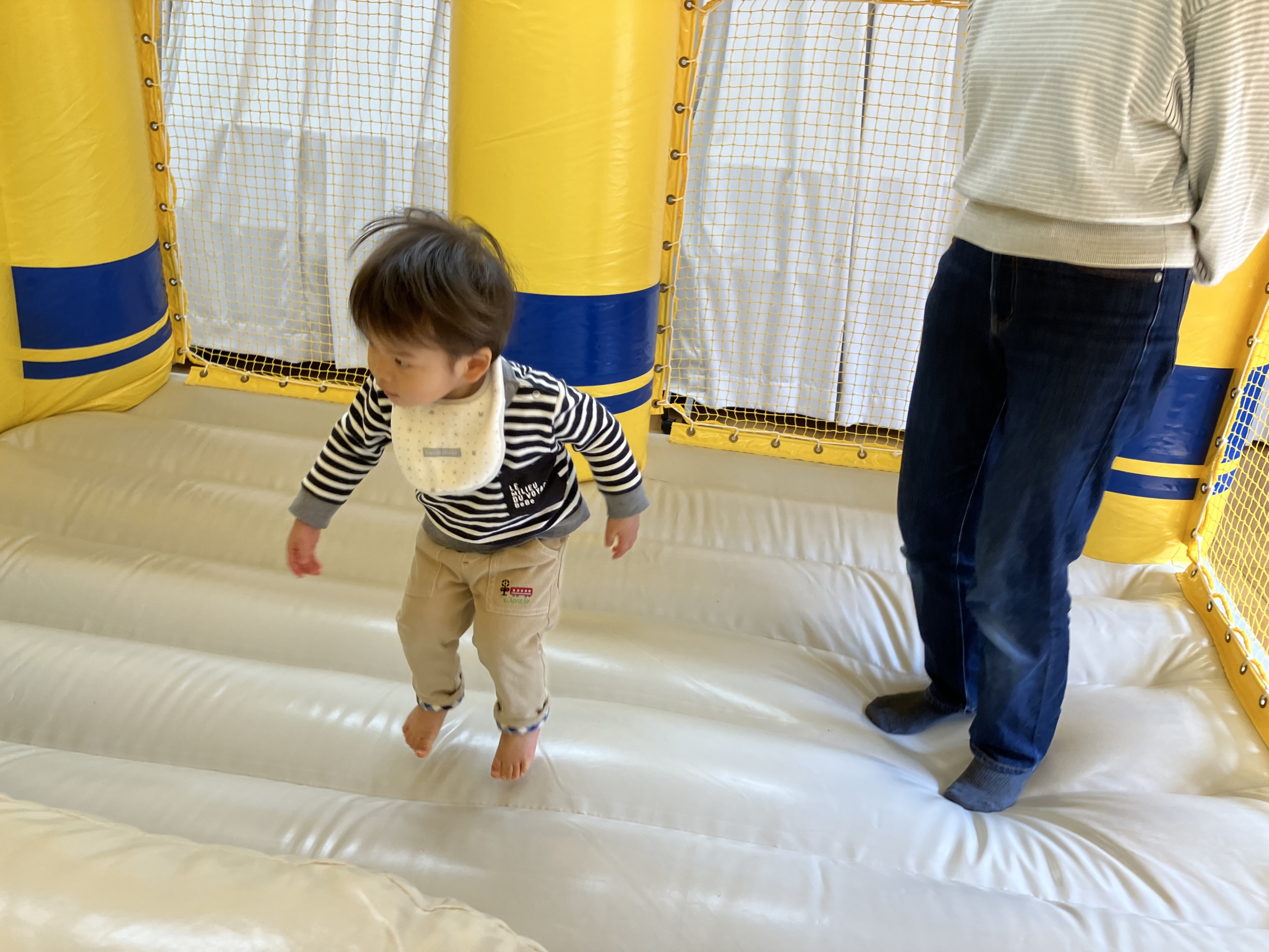 トランポリン感覚で、お母さんと一緒に「ジャンプジャンプ!」と